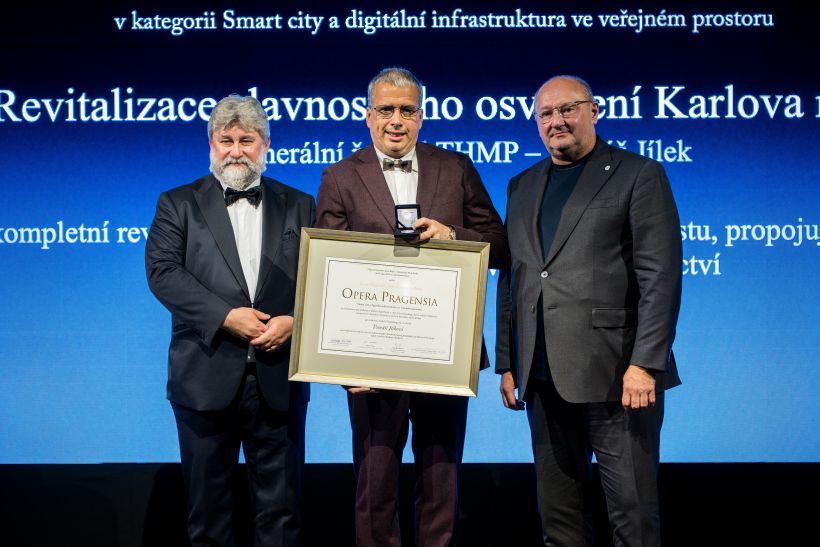 Praha, 14. října 2025Společnost Technologie hlavního města Prahy, a.s. (THMP) získala Cenu Magistrátu hl. m. Prahy – Opera Pragensia v kategorii II: Smart city a digitální infrastruktura ve veřejném prostoru. Porotu oslovil projekt kompletní revitalizace a digitalizace slavnostního osvětlení Karlova mostu, který propojuje technickou inovaci s respektem k této jedinečné kulturní památce. Cenu při slavnostním ceremoniálu v České národní bance předal generálními řediteli THMP Tomáši Jílkovi a řediteli odboru památkové péče Magistrátu hlavního města Prahy Jiřímu Skalickému radní hl. m. Prahy Michal Hroza.